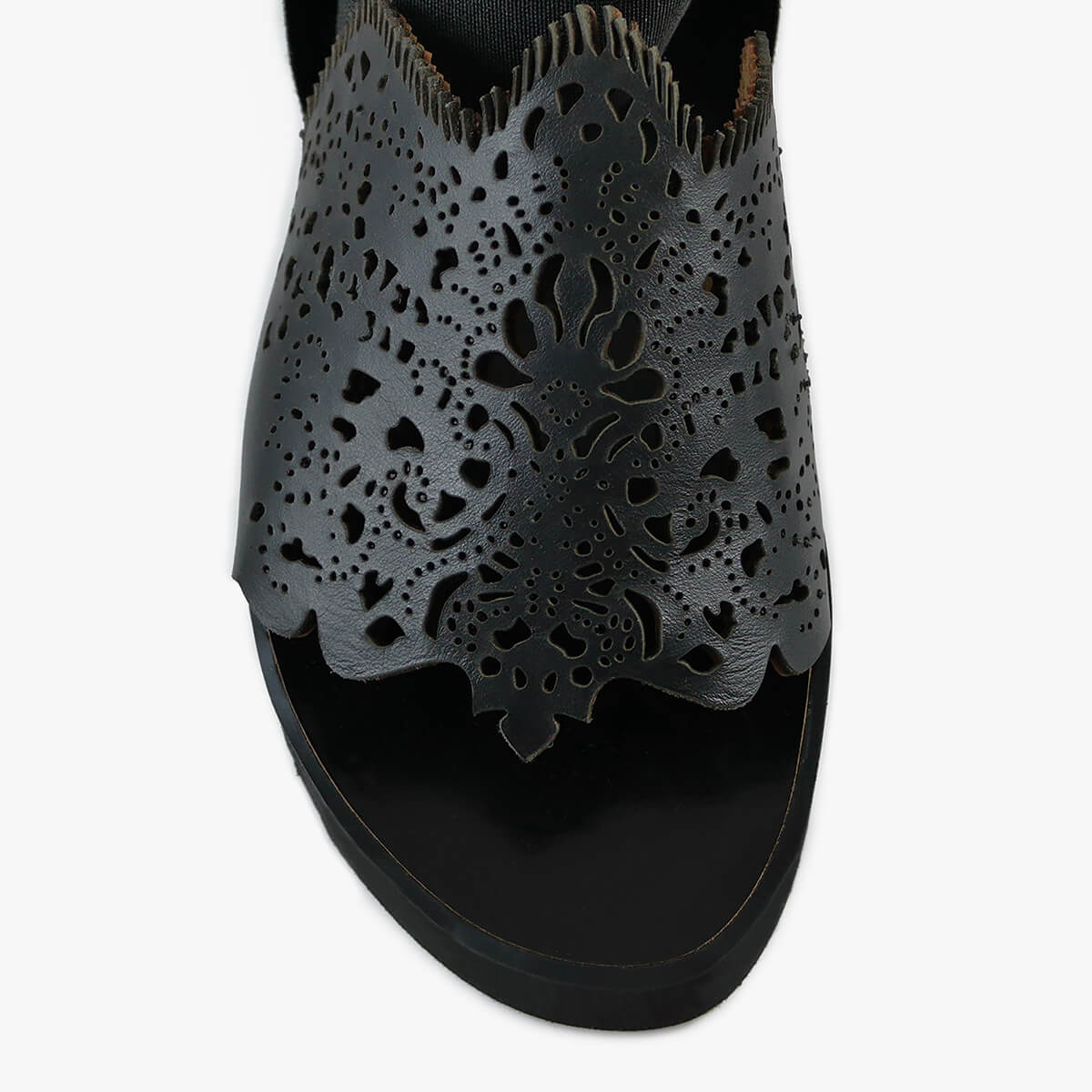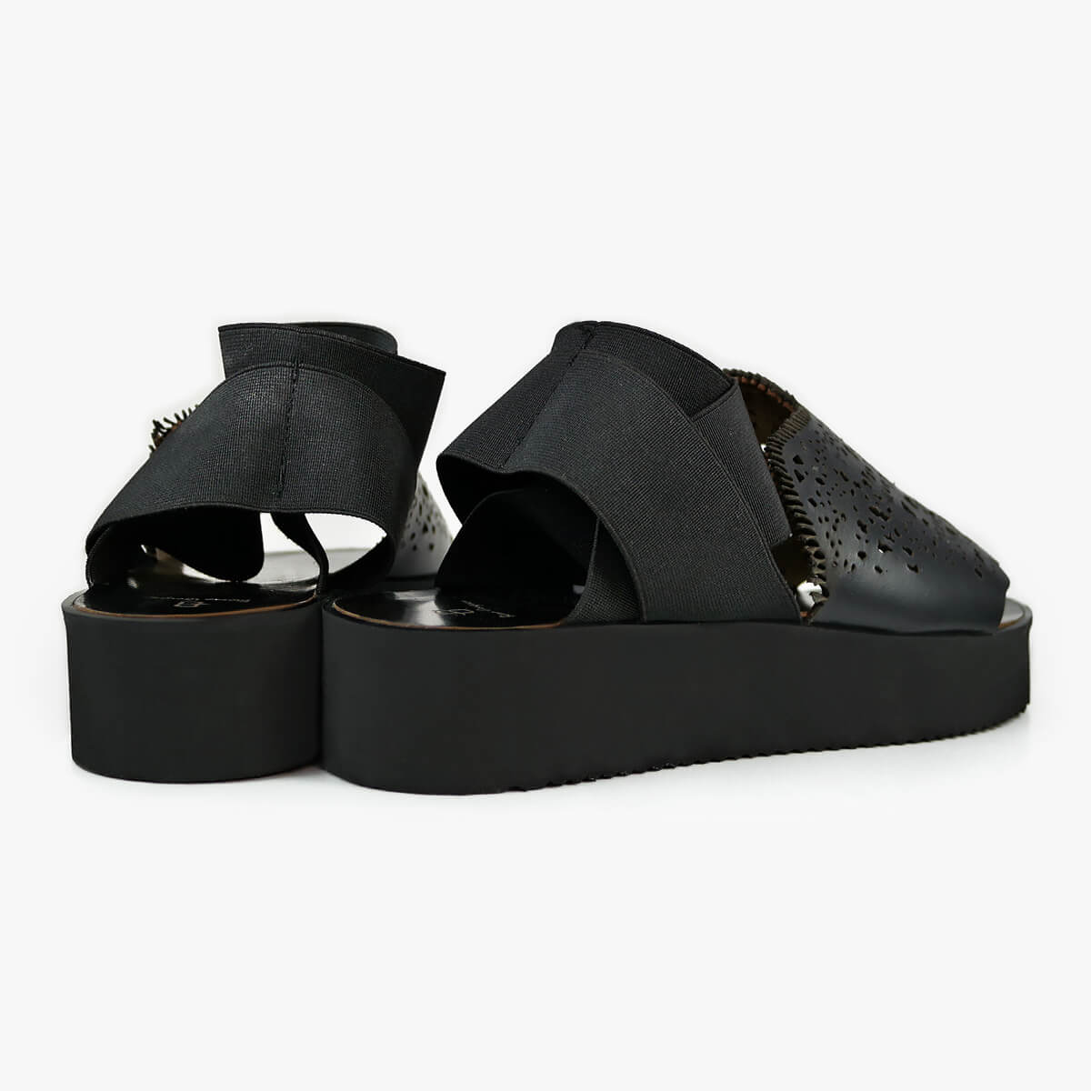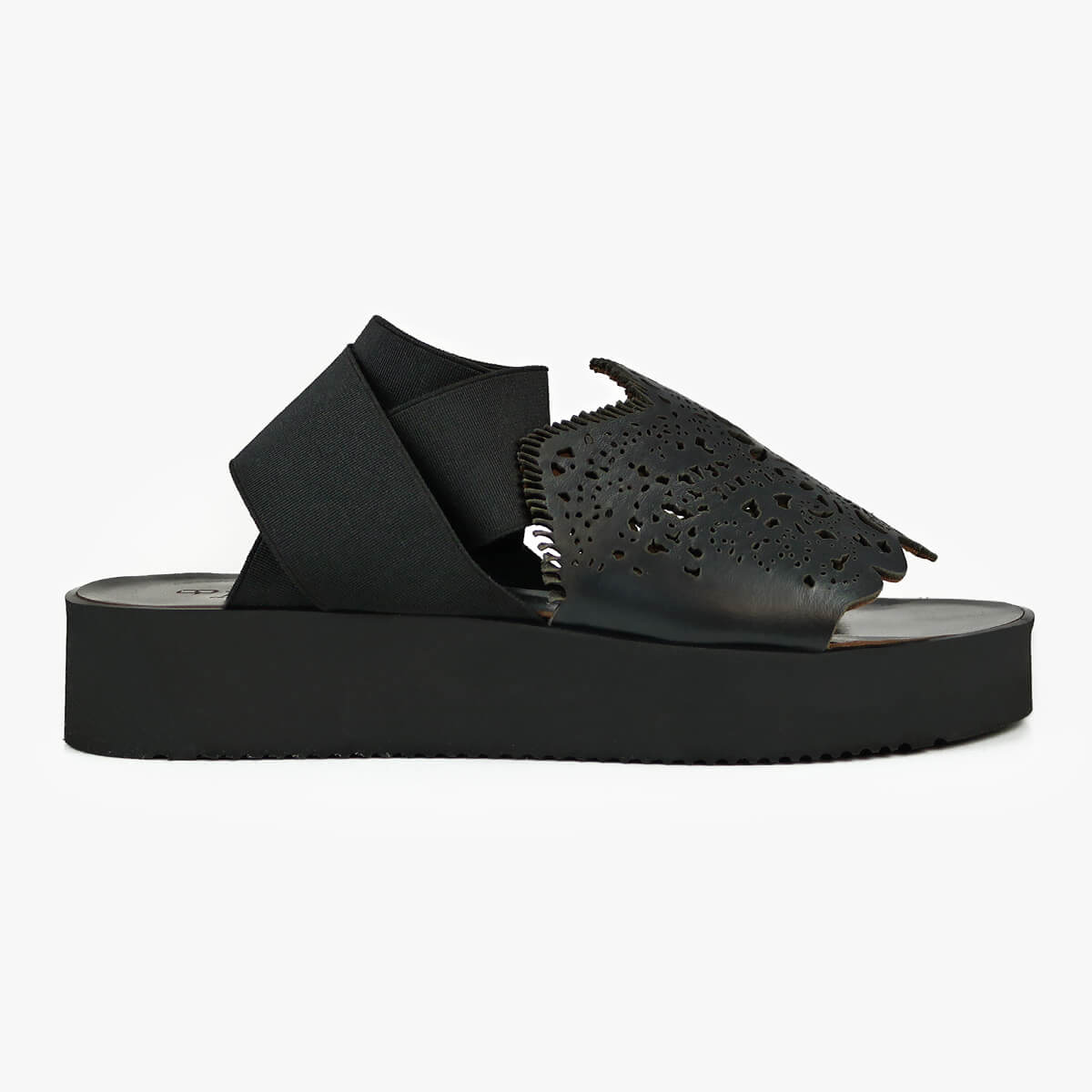 Update your sunshine essentials with a dose of off-beat attitude as the Bayeux new-season sandals are rendered in black. Featuring a chic platform design and elastic wraparound ankle straps, the upper is embellished with laser-cut patterns inspired by lace.