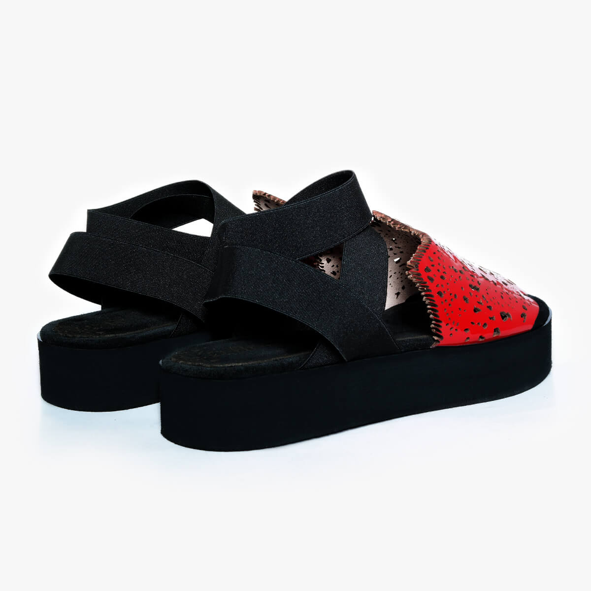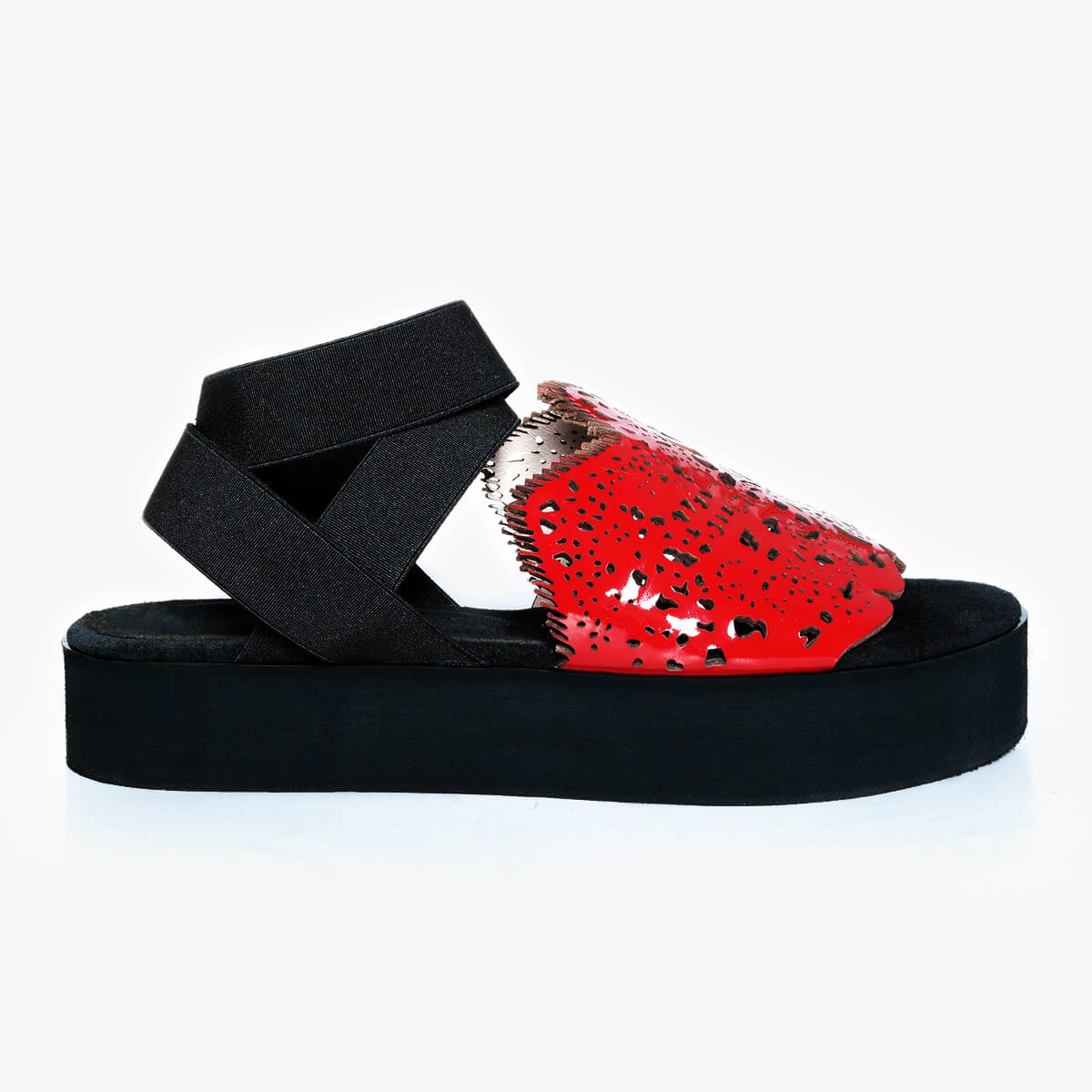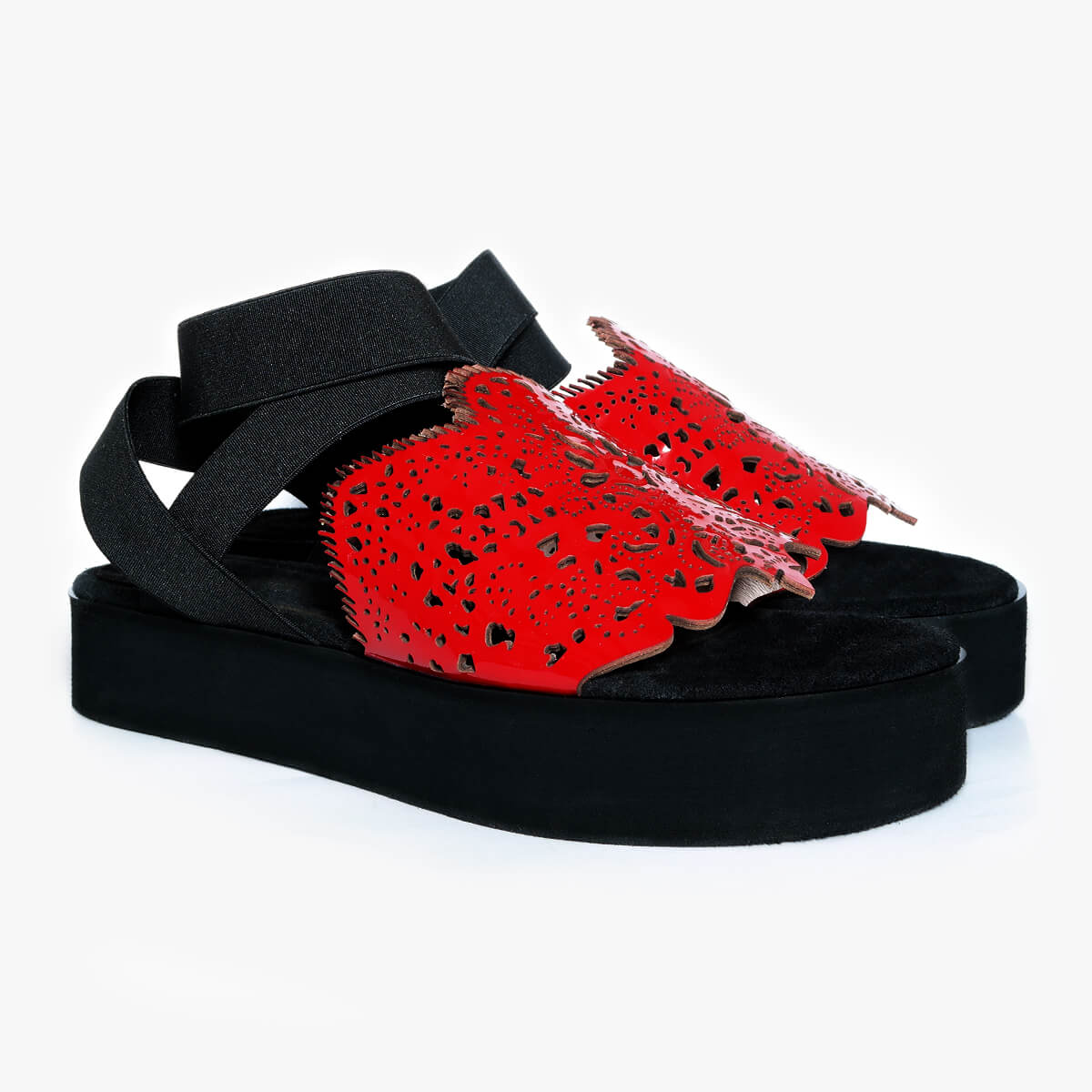 Update your sunshine essentials with a dose of off-beat attitude as the Bayeux new-season sandals are rendered in a red colorway. Featuring a chic platform design and elastic wraparound ankle straps, the upper is embellished with laser-cut patterns inspired by lace.