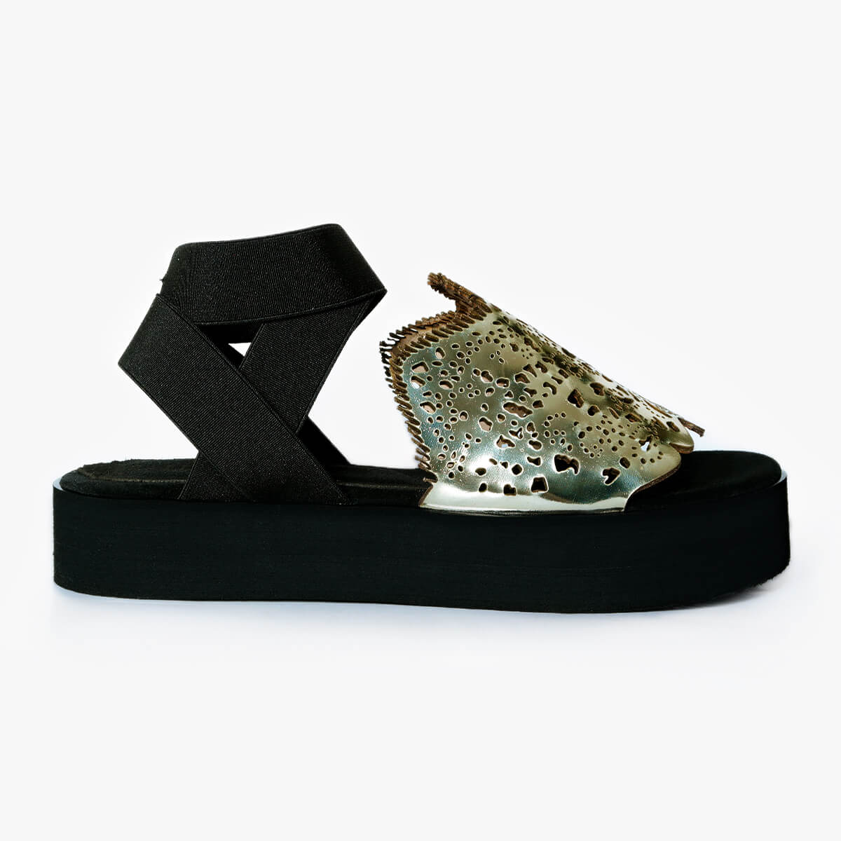 Update your sunshine essentials with a dose of off-beat attitude as the Blondmat new-season sandals are rendered in a golden colorway. Featuring a chic platform design and elastic wraparound ankle straps, the upper is embellished with laser-cut patterns inspired by lace.