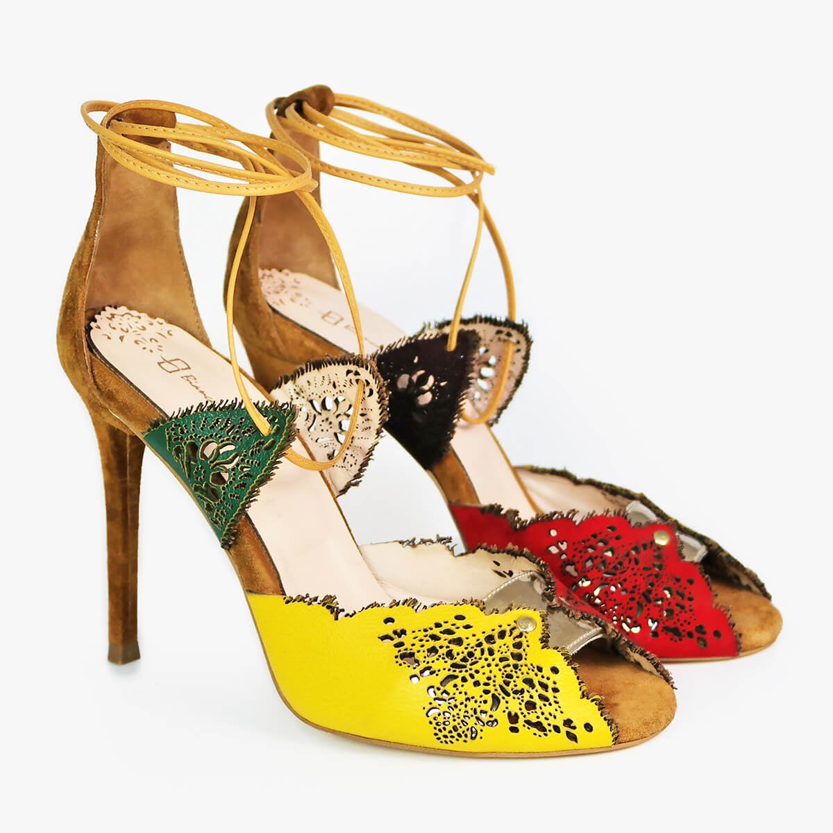 Halas sandals are a high-impact option for any attire. Finished with detachable buckle-fastening straps and wrap-around ankle straps, this versatile design is embellished with laser-cut patterns inspired by lace, while the pin-thin stiletto heel elevates the pair with seductive height.