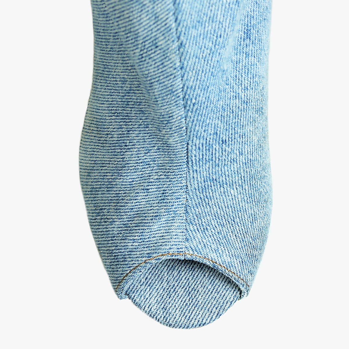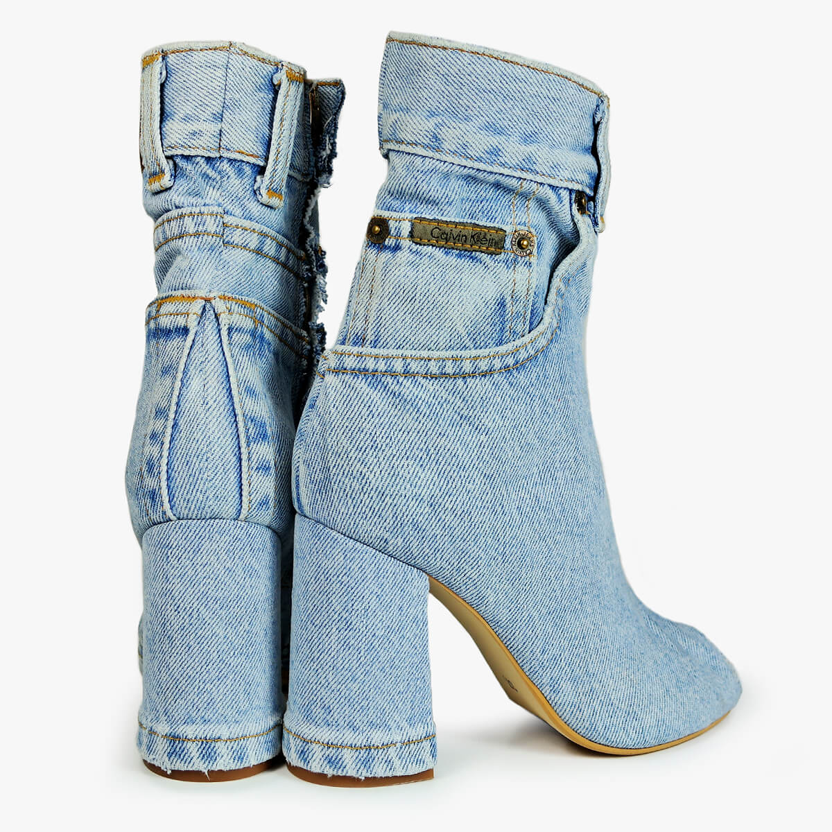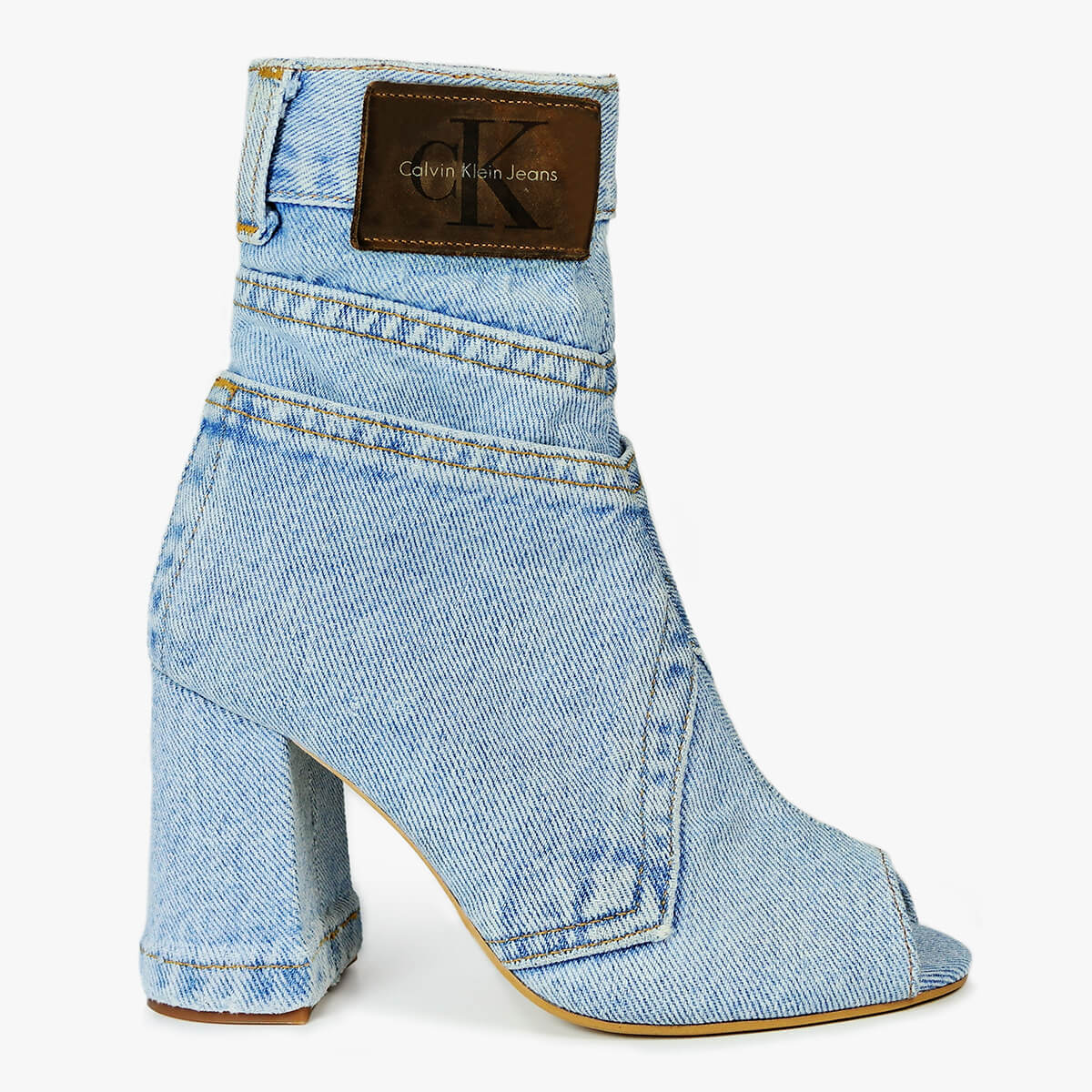 Lize open-toe booties are handcrafted from up-cycled premium quality denim. The design is set on a comfortable 9 cm block heel and features a metallic side zipper. Each up-cycled product is handmade upon purchase in unique series so materials and designs will be different from the pictures.