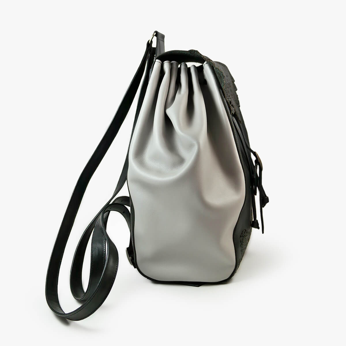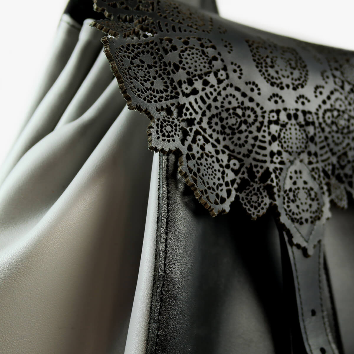 Maltese lace inspiration large backpack handmade from natural leather and embellished with laser-cut patterns.