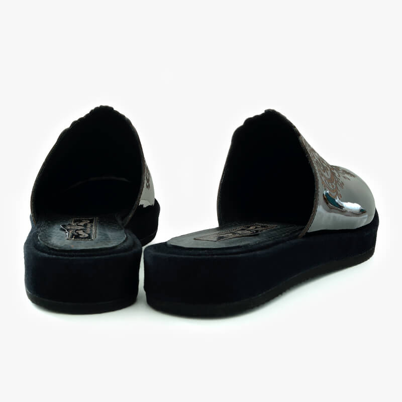 An easy to wear slip on style, Minya statement slippers will be sure to get you noticed. The slippers showcase an upper embellished with engraved arabesque patterns and super comfortable microlight sole, covered with leather.
