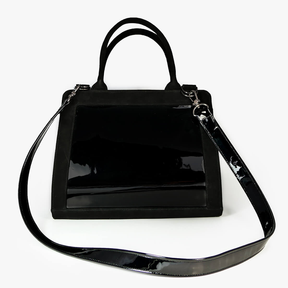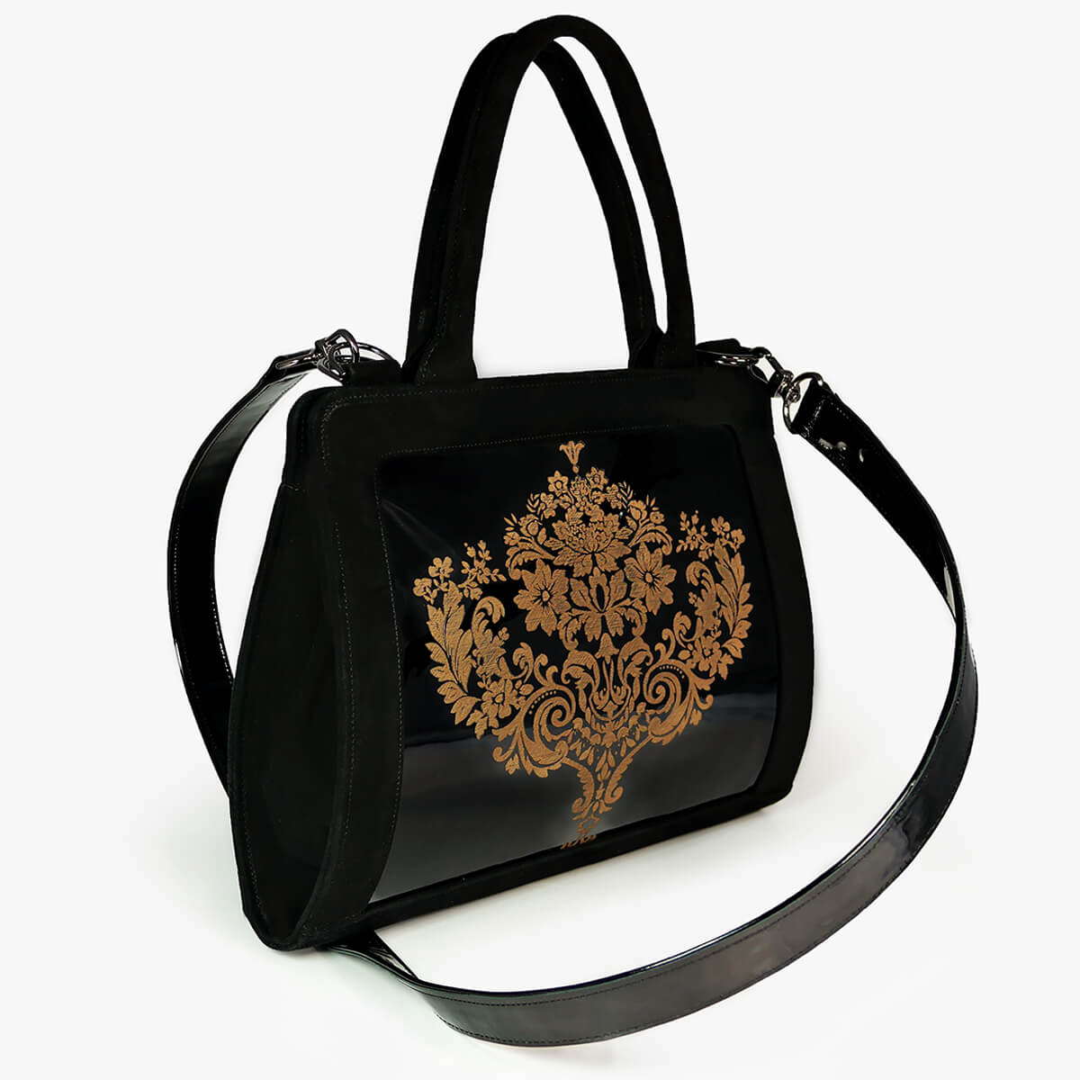 Swing your essentials in enviable style with the Omari shoulder bag. Crafted from black patent leather and adorned with engraved arabesque patterns, this silhouette can be worn in a variety of ways.