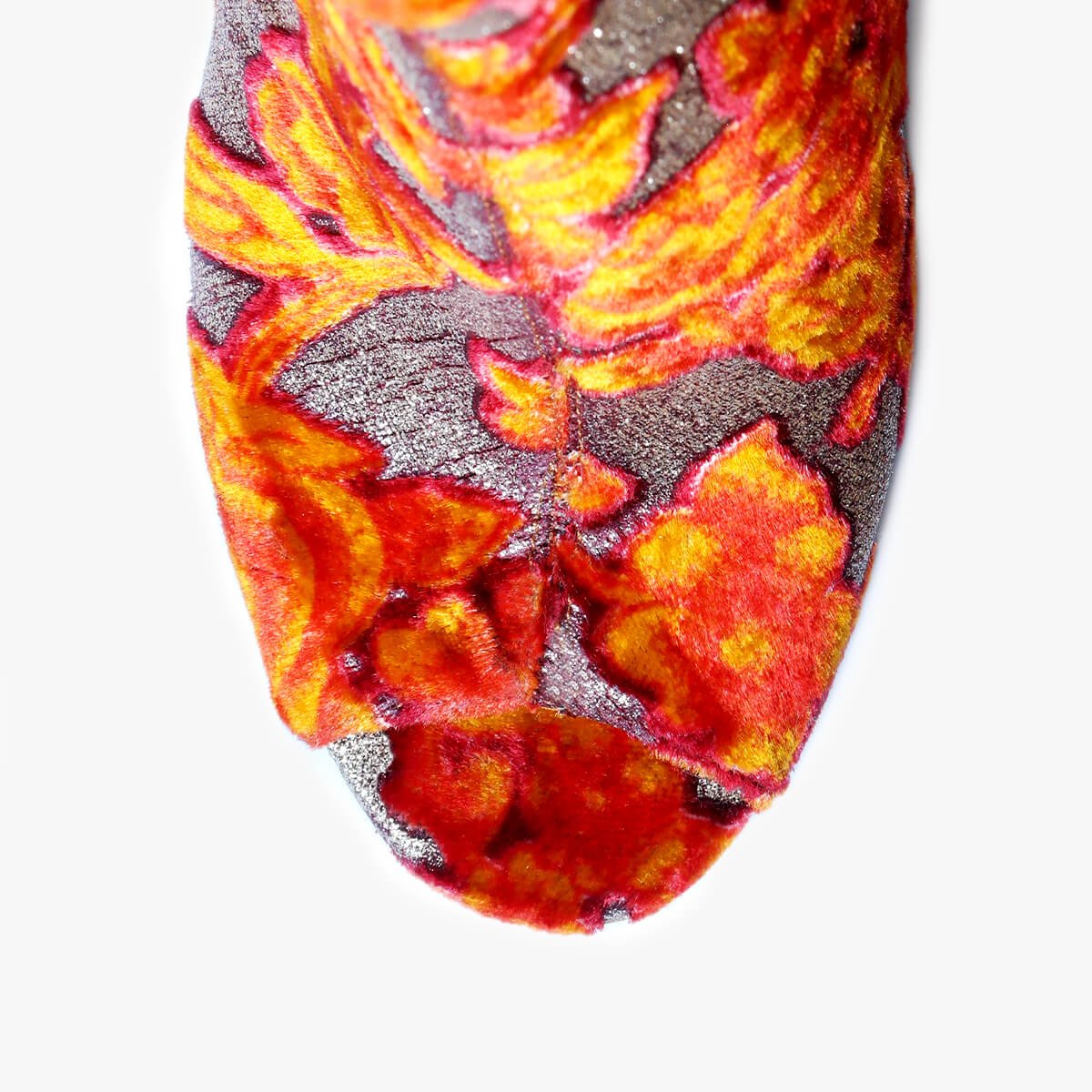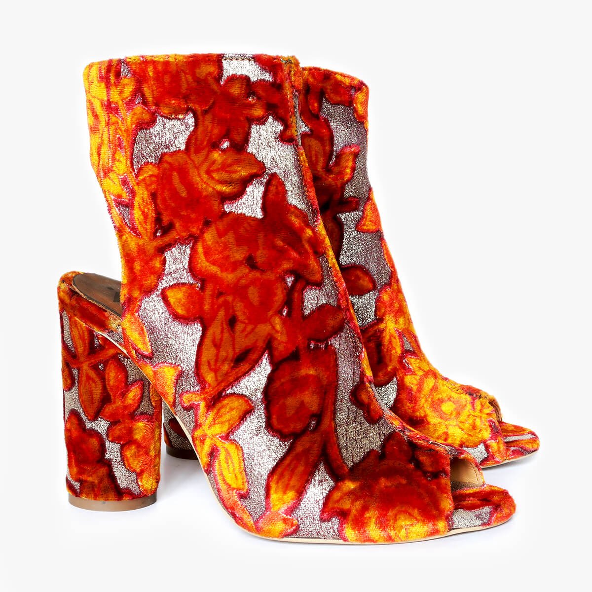 Dazzle day or night with Oranjello limited edition open toe ankle booties, completed with a back cutout and glinting side zip, while a leather insole ensures utmost comfort.