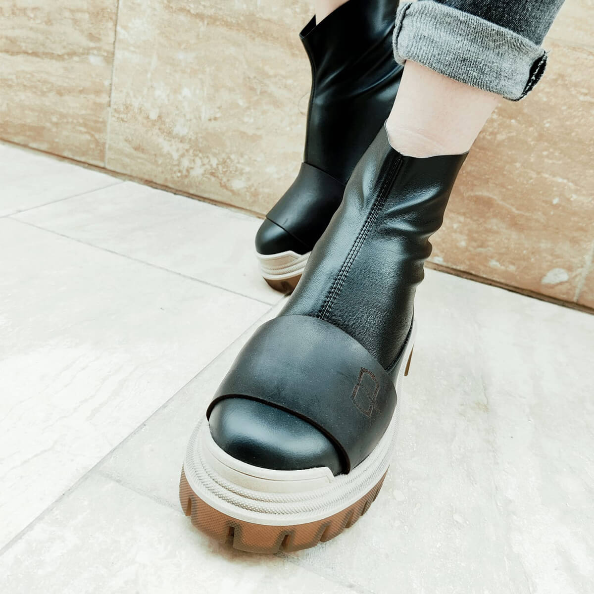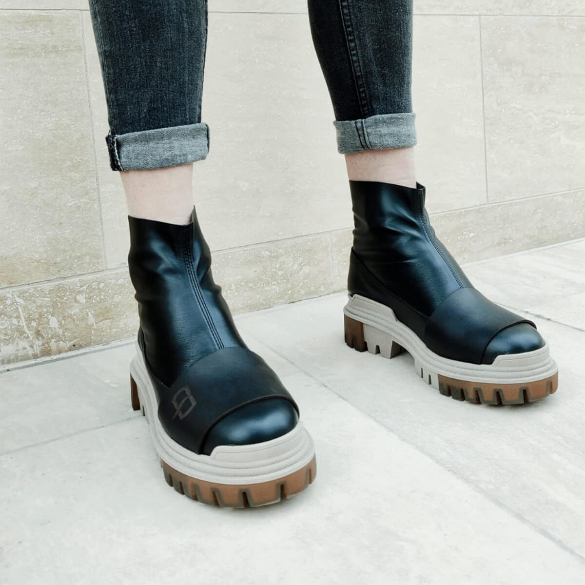 Set on a chunky rubber sole, with a rounded toe, Vorro short boots are handcrafted from a mix of leather and faux stretch leather, that encases the contours of the leg beautifully. These boots are the perfect element to elevate any casual outfit.